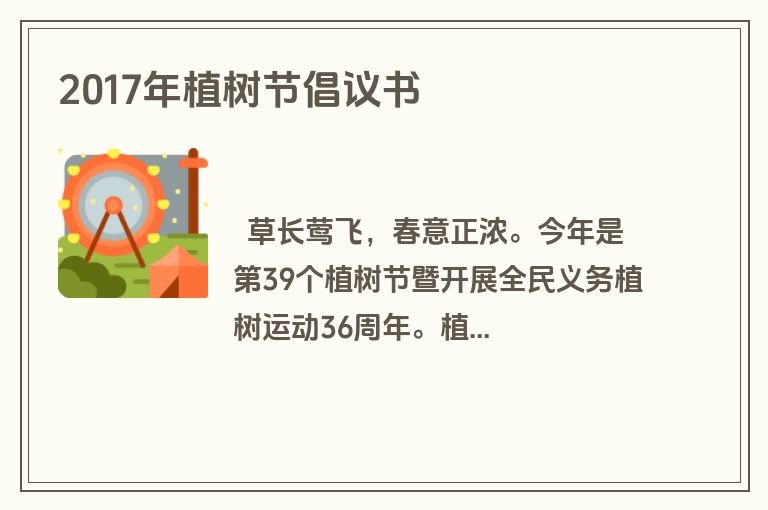 2017年植树节倡议书 https://www.neimou.com/article/7370010.html