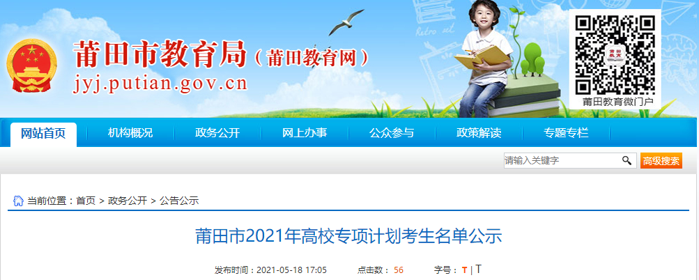 456人! 莆田公示2021年高校专项计划考生名单-教育资讯 https://www.jiaoyuzixun.net/fujian/202105/5302.html