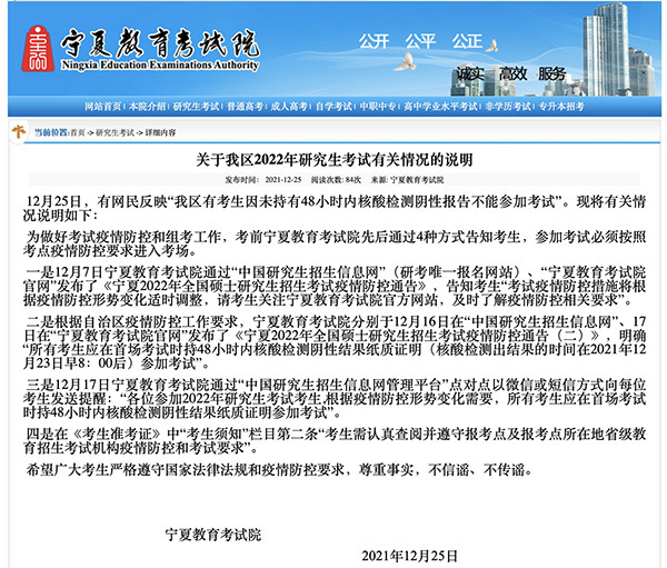 宁夏回应“考研生没核酸报告错过考试”: 曾通过4种方式告知-rebet雷竞技 //www.livlife365.com/ningxia/202112/23809.html
