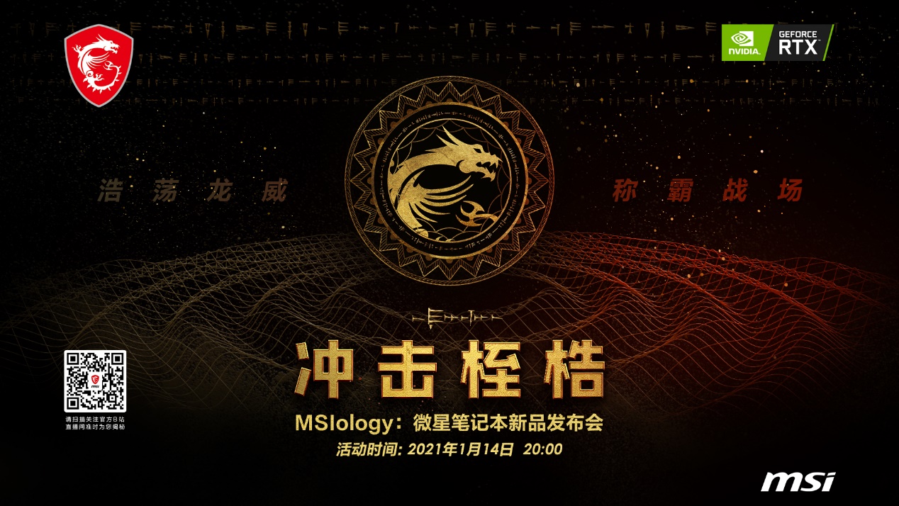 【重温龙魂传说:微星RTX30笔记本新品发布会拭目以待!】微星标志性的“龙盾”LOGO可谓是深入人心,“龙”不仅仅代表微星笔记本在PC业界的深厚底蕴,更代表了每一款新品拥有强大的力量,都足以给无数玩家更大的惊喜,更有冲击力的游戏体验! 1月14日晚8点,微星RTX30笔记本新品发布会,即将为大家带来