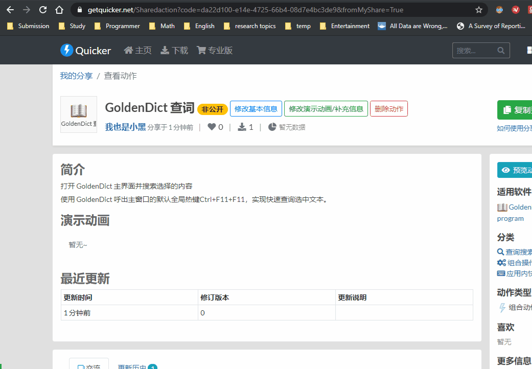 #Quicker动作#GoldenDict 查词--打开 GoldenDict 主界面并搜索选择的内容 作者:我也是小黑 https://getquicker.net/sharedaction?code=da22d100-e14e-4725-66b4-08d7e4bc3de9