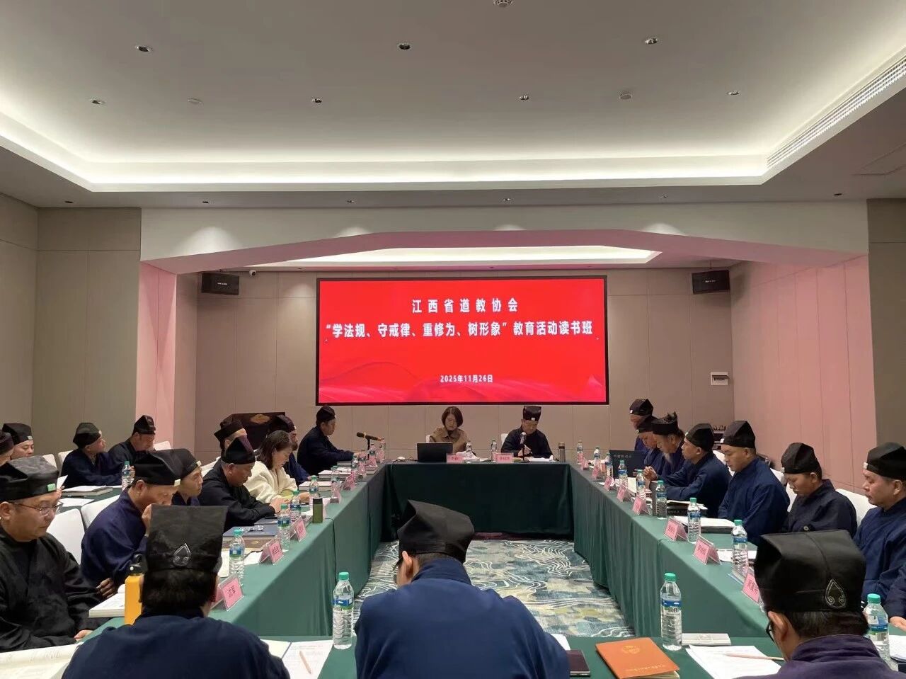 【江西省道教协会在南昌举办“学法规、守戒律、重修为、树形象”教育活动读书班】2025年11月24日至27日,为深入推进“学法规、守戒律、重修为、树形象”教育活动,进一步提升全省道教界人士的政治素养、法治意识和宗教修为。根据中国道教协会的部署要求,江西省道教协会在南昌组织举办了为期四天的教育