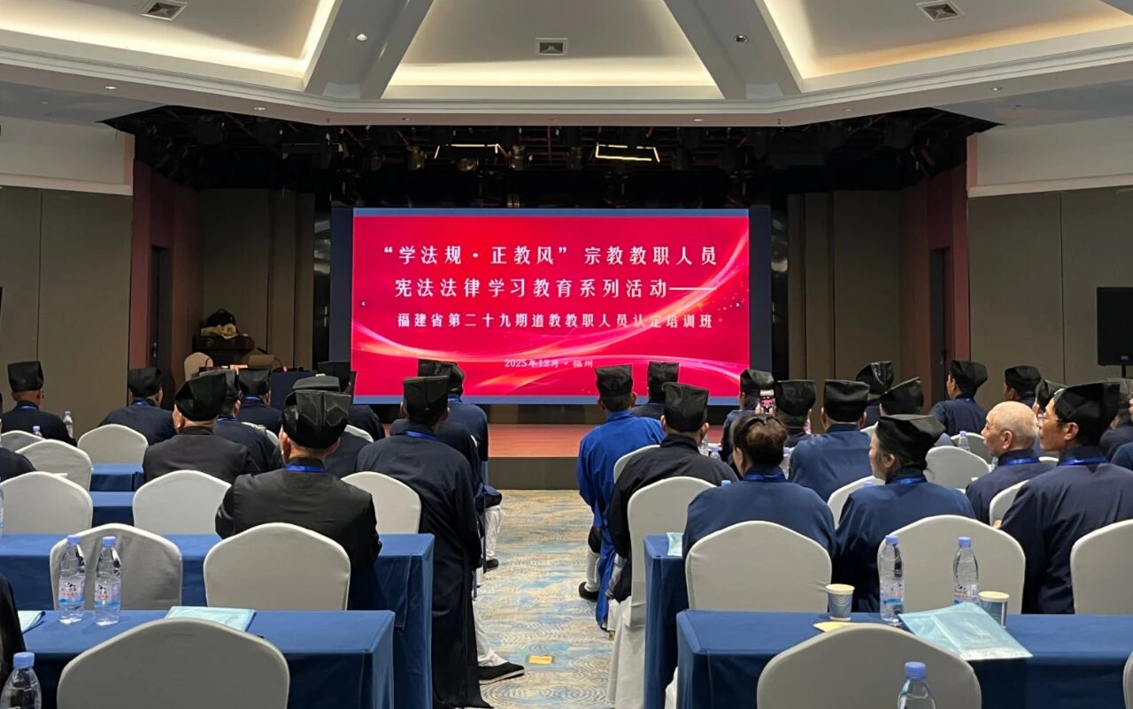 【“学法规•正教风”——福建省道教协会举办第二十九期道教教职人员认定培训班】2025年12月3日至5日,福建省第二十九期道教教职人员认定培训班在福州举行,来自全省九设区市以及平潭综合实验区共计99名学员参加培训。福建省道协副会长吴历田,副秘书长李志峰出席培训开班式,福建省民族与宗教事务厅民