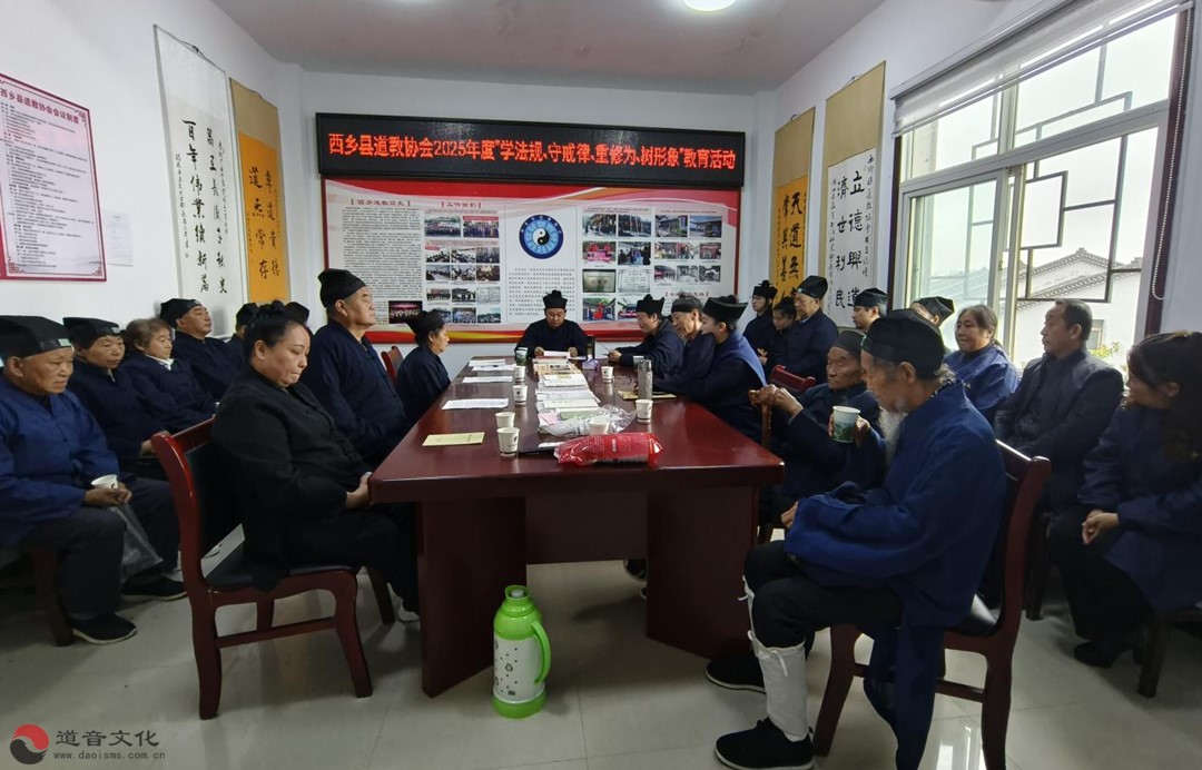 【西乡县道教协会开展“学法规、守戒律、重修为、树形象”主题教育活动】2025年11月7日,陕西省西乡县道教协会开展“学法规、守戒律、重修为、树形象”主题教育活动,深入学习党的二十届四中全会精神、学习习近平总书记在中共中央政治局第二十二次集体学习时的重要讲话精神,学习全国性宗教团体发出的