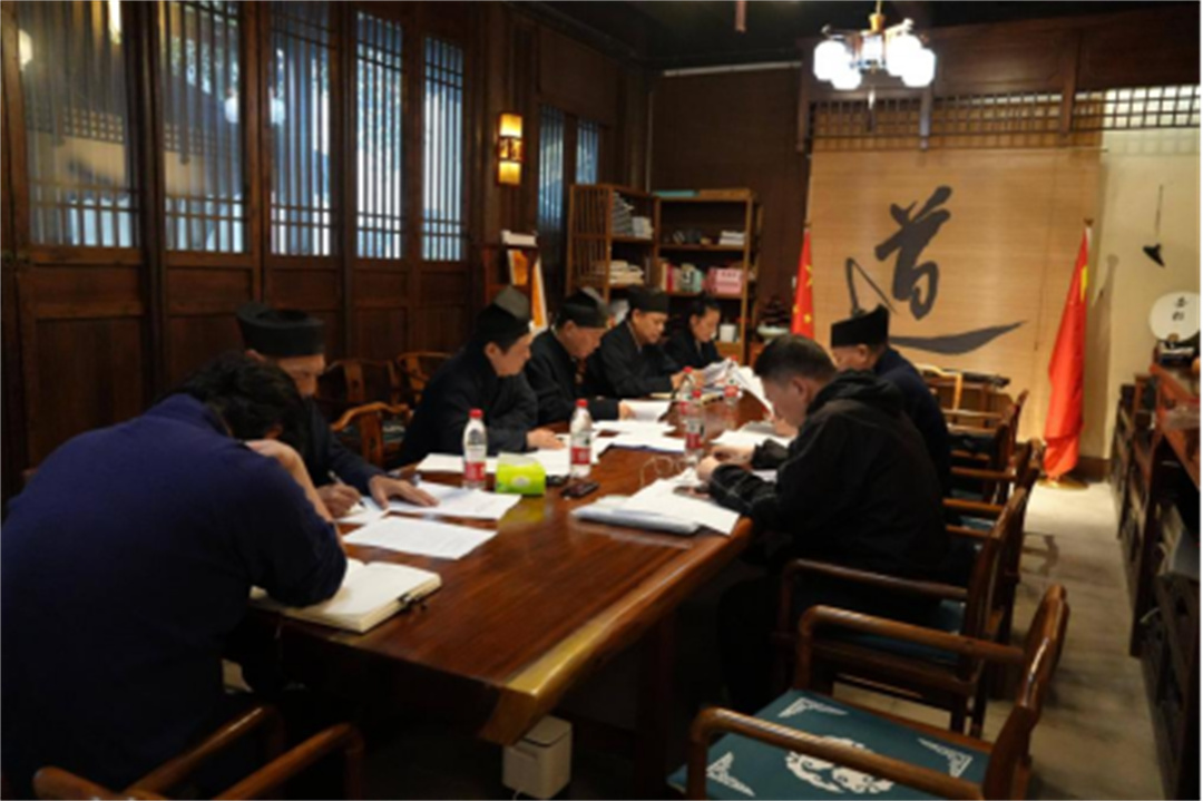 【杭州市道教协会召开五届十二次会长办公会议传达学习党的二十届四中全会精神】2025年11月3日,杭州市道教协会召开五届理事会十二次会长办公会议。杭州市道教协会会长董中基、副会长林崇善、王崇坤、张崇达、王崇华、汪显庆、秘书长李翔参加会议。会议由董中基道长主持。 会议专题传达学习了党的二十届