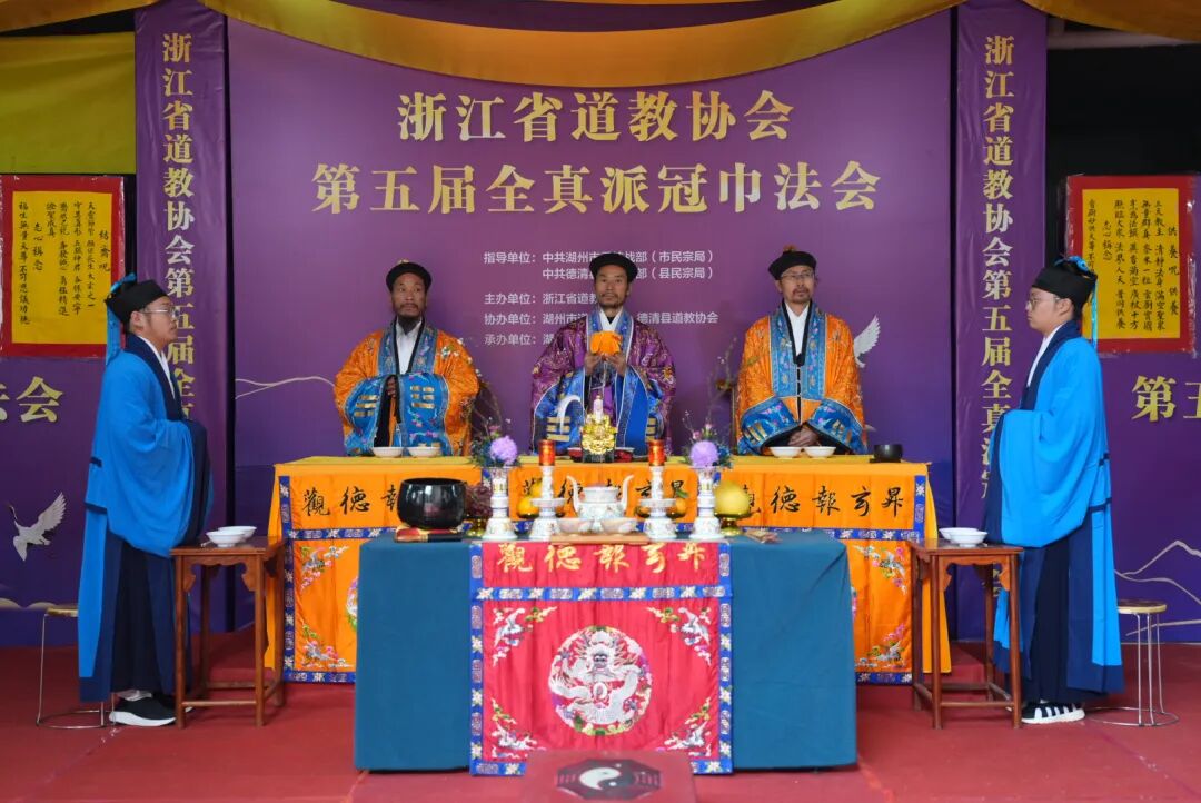 【浙江省道教第五届全真派冠巾活动在湖州成功举办】2025年12月1日至4日,浙江省道教协会第五届全真派冠巾活动在湖州升玄观成功举办。此次冠巾活动为期4天,来自全省各地共108名新晋冠巾弟子参加。 活动在庄严的国歌声中拉开序幕。为深入贯彻落实“学法规、守戒律、重修为、树形象”教育活动要求,按照