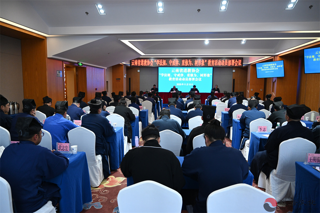 【云南省道教协会召开“学法规、守戒律、重修为、树形象”教育活动动员部署会】2025年11月15日,云南省道教协会召开“学法规、守戒律、重修为、树形象”教育活动动员部署会。云南省道教协会常务理事、监事,各州(市)县(区)道教协会、宫观主要负责人及教职人员代表共70余人参加,省民族宗教委副主任