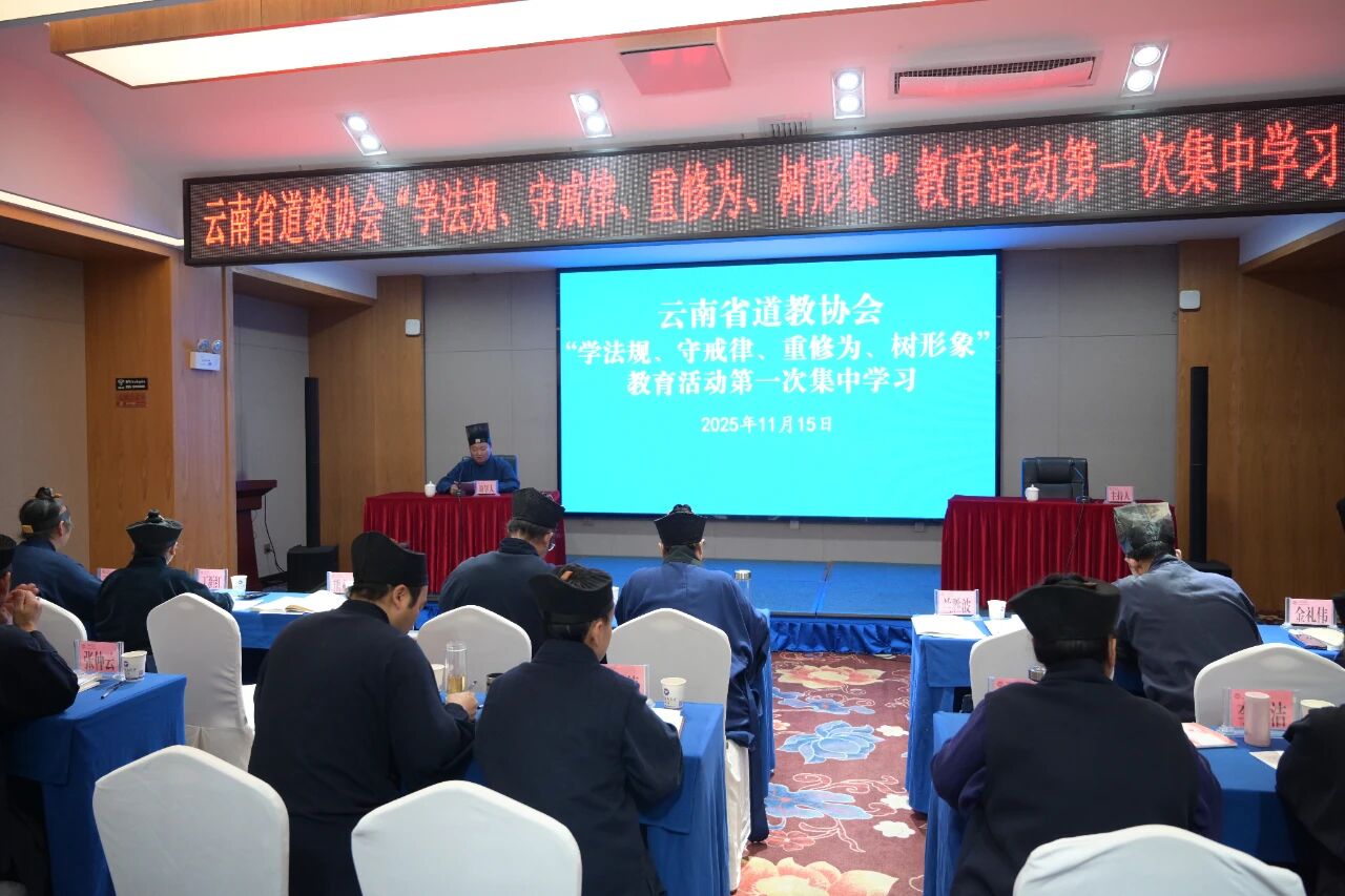 【云南省道教协会举办“学法规、守戒律、重修为、树形象”教育活动第一次集中学习会】近日,云南省道教协会举办“学法规、守戒律、重修为、树形象”教育活动第一次集中学习会。云南省道教协会常务理事、监事,各州(市)县(区)道教协会、宫观主要负责人及教职人员代表共70余人参加。 学习会上,省道