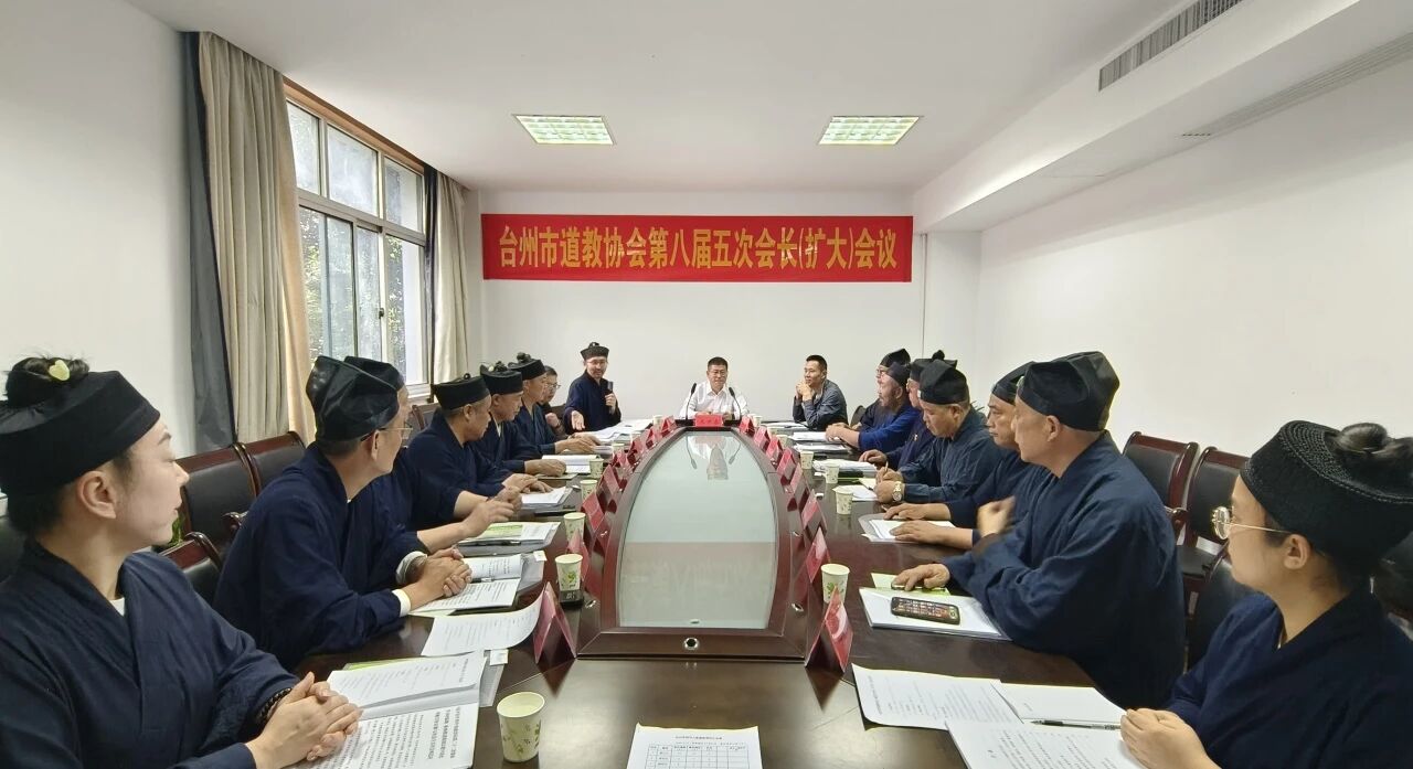 【台州市道教协会召开八届五次会长(扩大)会议】2025年10月20日下午,台州市道教协会召开八届五次会长(扩大)会议。台州市委统战部部务会议成员、市民宗局副局长朱世春应邀出席并讲话,市委统战部宗教一处副处长刘月东,市道协会长王永山及全体班子成员参加会议。会议由王永山道长主持。 会议学习了