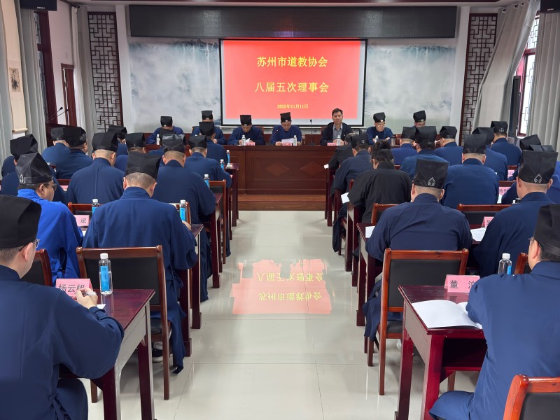 【苏州市道协召开八届五次理事会议】2025年11月11日,苏州市道协八届五次理事会议在句容茅山崇禧万寿宫召开。苏州市民宗局宗教一处处长欧阳贤标,市道协八届理事会理事参加会议。会议由苏州市道协会长韩晓东道长主持。 会议传达并学习了中国共产党第二十届中央委员会第四次全体会议公报、习近平总书记