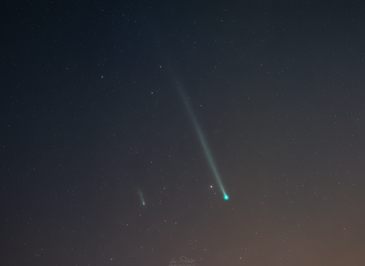 【萍踪偶契光年迹,并耀银河两玉尘】© Luc Perrot 星语 目前太阳系中有两颗彗星似乎在 “你追我赶”。它们的编号分别是:C/2025 K1 ATLAS(左侧)和 C/2025 R2 SWAN(右侧)。事实上,它们各自的运行轨道截然不同,但昨晚(2025 年 9 月 20 日,周六),通过仪器确实能看到它们彼此相 ... https://ww